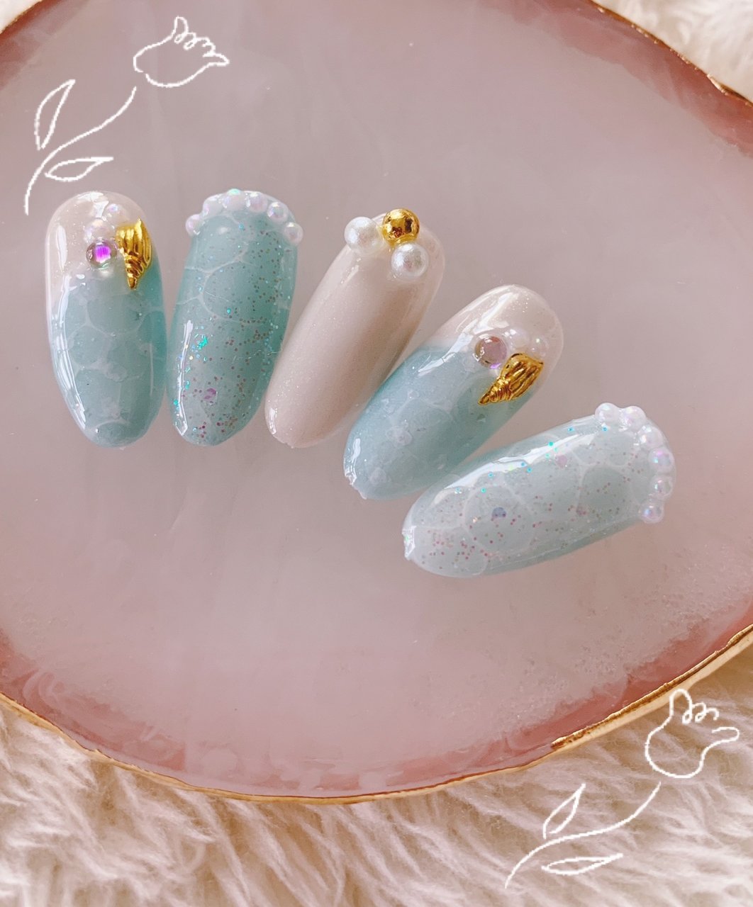 噂の人魚の鱗ネイル ︎カラフルバージョン♫ この夏一度はやりたいart ︎ ネット予約できますインスタプロフィールからネイルブックにて #Linoah nail #kyoto #桂 #paragel #フィルイン #ベース1層